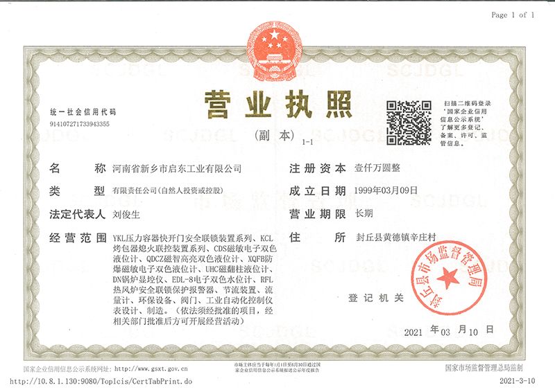 河南省新鄉(xiāng)市啟東工業(yè)有限公司始建于1987年,是專注研發(fā)、生產(chǎn)自動化儀器儀表(主要與壓力容器、鍋爐等容器配套使用)的廠家。主要產(chǎn)品有液位計(磁敏雙色型、磁翻柱型等)系列、烤包器熄火聯(lián)控裝置系列、壓力容器快開門安全聯(lián)鎖保護裝置系列、鍋爐報警器系列。二十多年來,公司產(chǎn)品暢銷國內(nèi)并遠銷俄羅斯、蒙古與東南亞,深得廣大用戶的信賴和好評。我們多年來致力于自動化儀器儀表的研制生產(chǎn),公司現(xiàn)具有完善的生產(chǎn)、試驗、檢測手段和設(shè)備。科技創(chuàng)新、誠信服務(wù),是我們不變的經(jīng)營理念,我們將以強有力的技術(shù)支持及售后竭誠為客戶提供良好的服務(wù)。  2012年我公司成功研發(fā)了KCL系列烤包器熄火聯(lián)控裝置,并于2013年2月2日榮獲中華人民共和國國家知識產(chǎn)權(quán)局辦法的《實用新型**證書》<**號:2021202257735>該產(chǎn)品廣泛應(yīng)用于唐鋼等大型鋼鐵企業(yè),為烤包器安全作業(yè)提供了有力的保障。  2002年我公司成功研發(fā)磁敏電子雙色液位計獨特的高亮度LED紅綠雙色顯示,獲得了專家的首肯和用戶的一致好評。在此基礎(chǔ)上我公司研發(fā)人員十年磨一劍,致力于XQFB-1防爆型磁敏雙色液位計的研發(fā),于2013年12月27日由國家防爆電器產(chǎn)品質(zhì)量監(jiān)督檢驗中心檢驗合格并頒發(fā)防爆合格證書<編號:cnex19.0883>。該產(chǎn)品性能得到了充分的發(fā)揮,廣泛應(yīng)用于含有Ⅱ類A·B級T1-T4組可燃?xì)怏w或蒸汽與空氣混合形成的爆炸性混合物的0區(qū)、1區(qū)危險場所。連接用戶DCS或PLC系統(tǒng)實現(xiàn)遠距離集中顯示和控制,從而實現(xiàn)節(jié)能、數(shù)字化管理。為用戶增加了一定的經(jīng)濟效益和社會效益,。2014年公司成功申請了夢潤儀表的logo,新的品牌新的形象,夢潤儀表是啟東的LOGO, 歡迎新老用戶前來洽談合作。  我們一如既往地注重科研的投入,憑借產(chǎn)品的不斷更新、加大科技含量,進一步拓展市場。我們相信品質(zhì)成就未來,以過硬質(zhì)量、優(yōu)惠價格、完善的售后服務(wù)熱忱歡迎廣大客戶來我司視察指導(dǎo)、洽談業(yè)務(wù);精誠合作,共創(chuàng)輝煌!